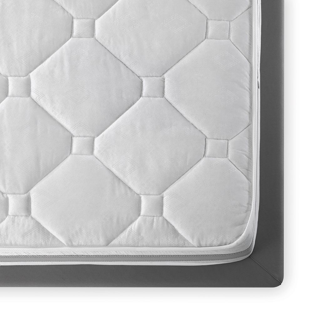 Materasso Super Ortopedico H19. Realizzato con sistema Box System in poliuretano espanso ad alta portanza e molleggio Bonnel. Il rivestimento climatizzato con fascia 3D traspirante e imbottitura anallergica.