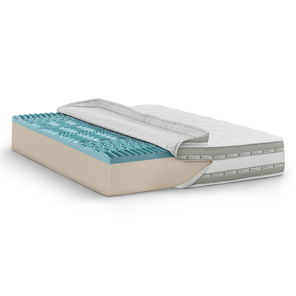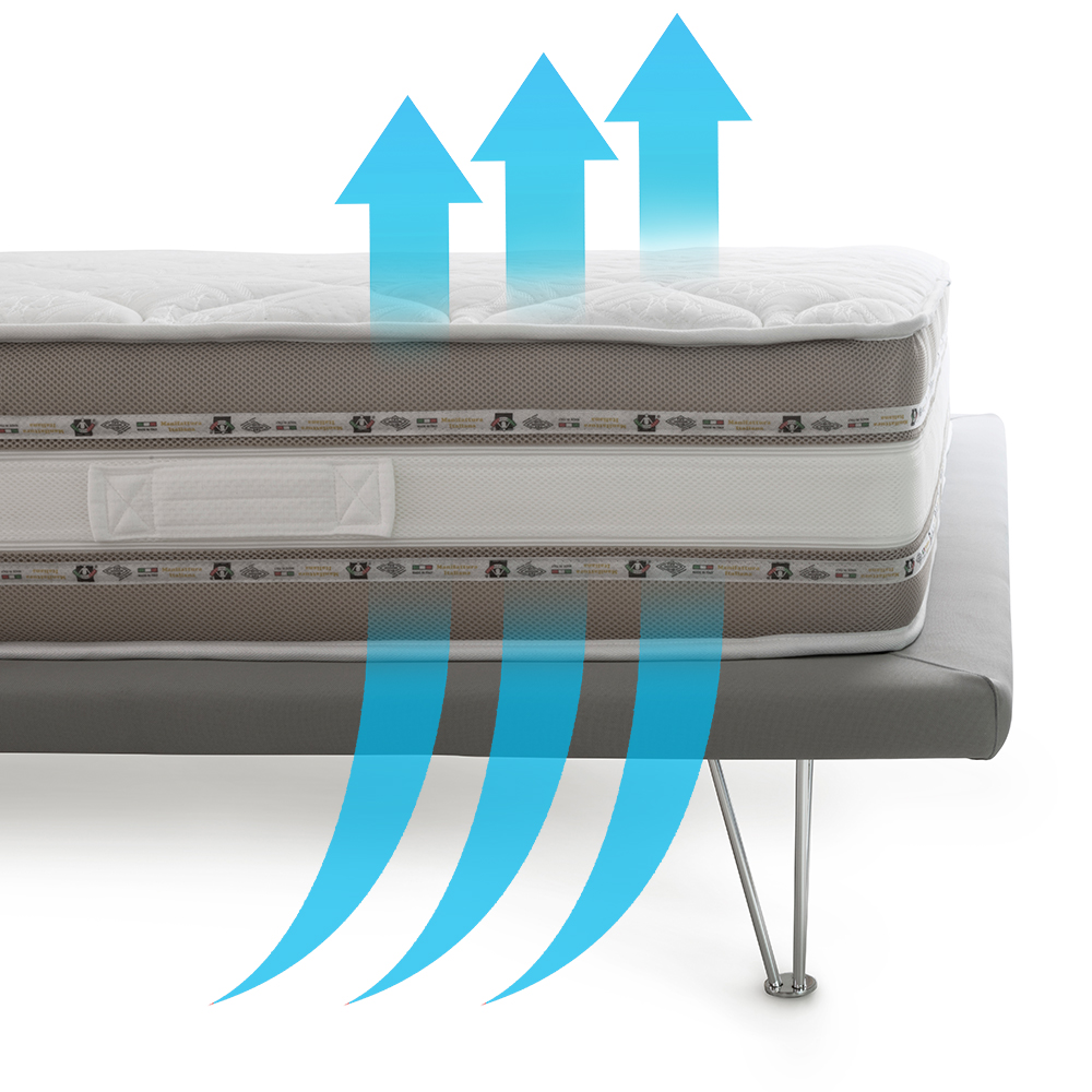 L’imbottitura in Fibra Politecno 100gr ipoallergenica ed è abbinata a uno strato di 1cm in Memory Gel losangato nella parte superiore. Si tratta di una schiuma rinfrescante che isola e assorbe la sudorazione, mantenendo costante la temperatura, grazie alle particelle di “gel” che assorbono il calore.
